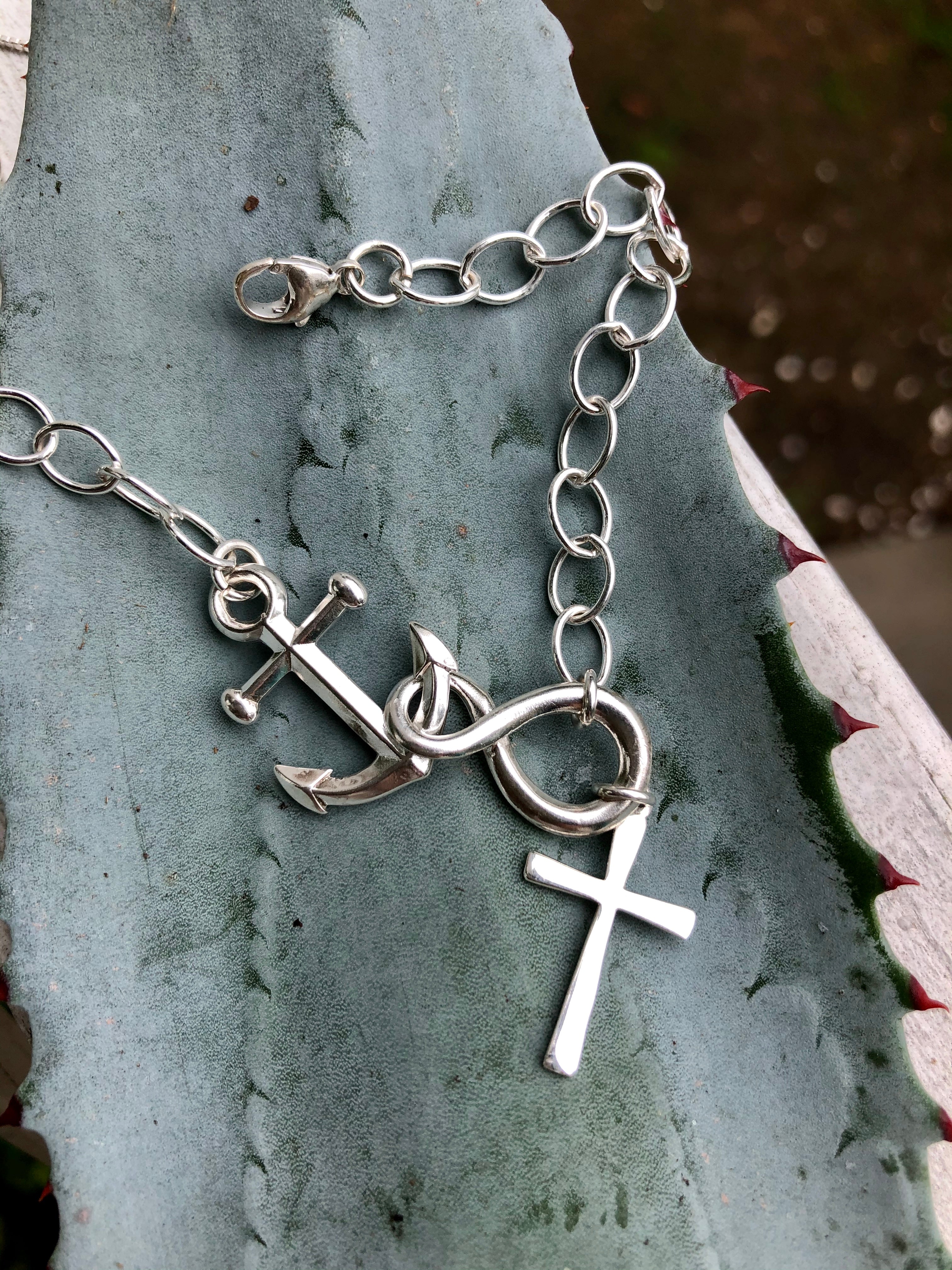 Choose from my four different Christ collection designs. These are all handmade with solid 925 sterling silver. The oval links are 6.3mm made for easy adjustment. These bracelets come with three different lengths to choose from.