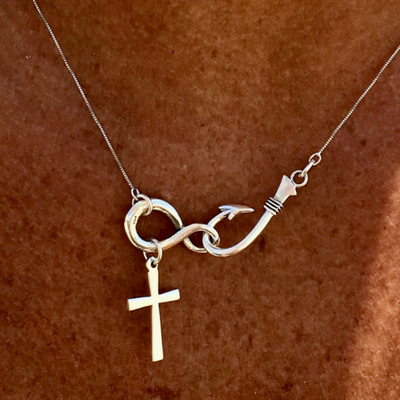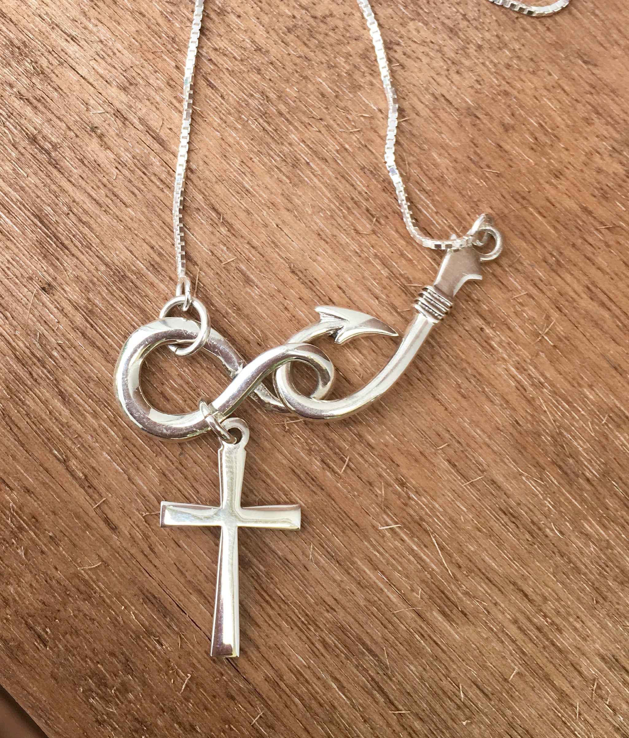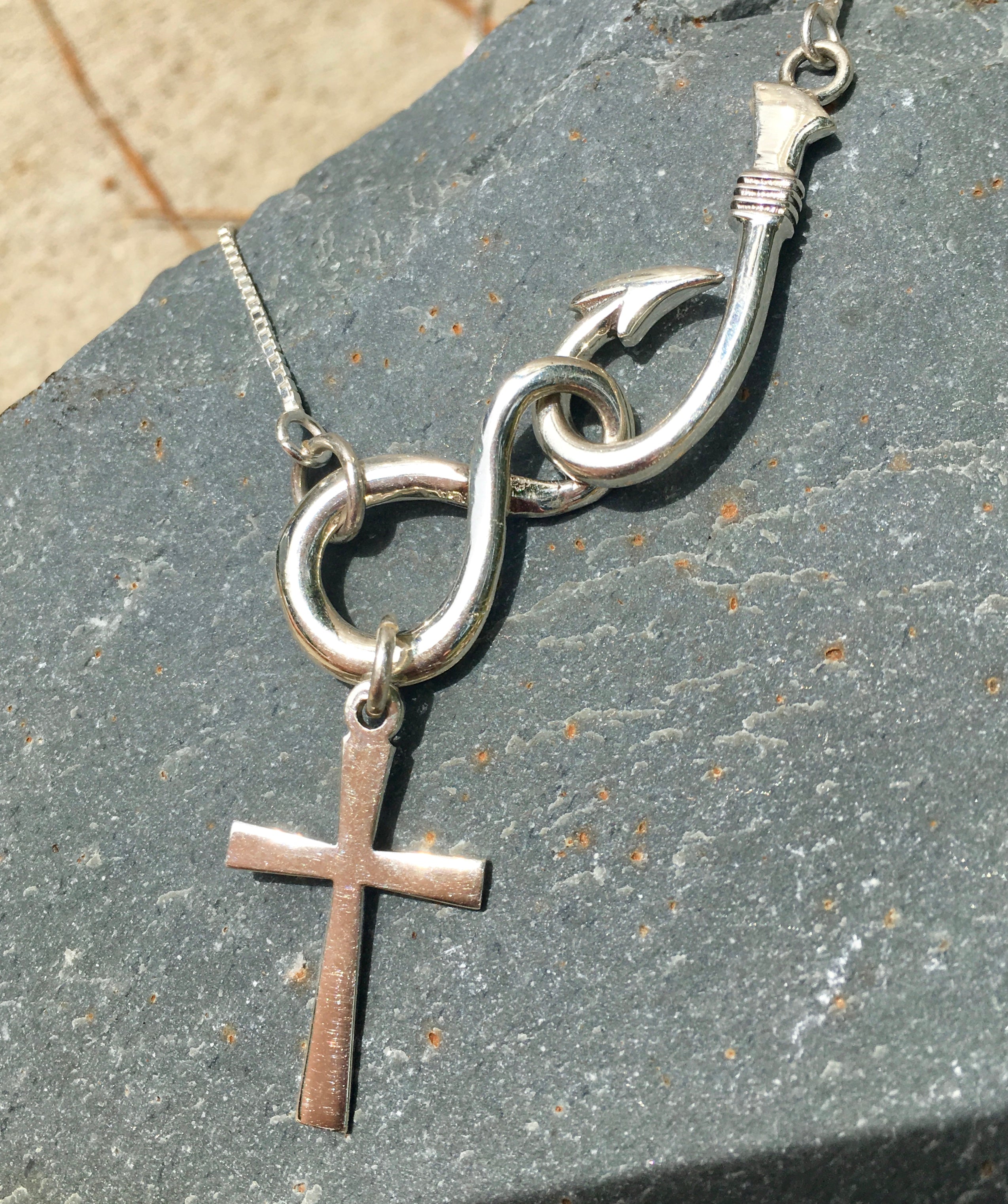 Hook, infinity symbol, cross